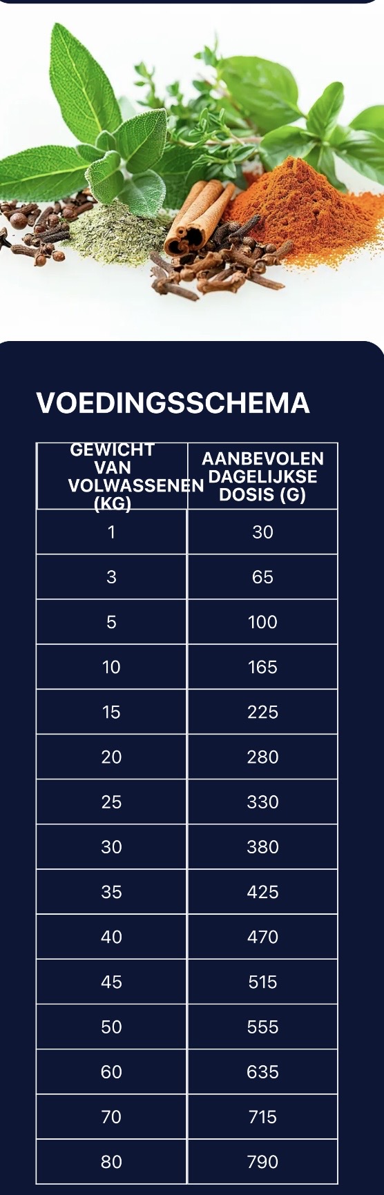 Technologische additieven: bevat natuurlijke antioxidanten (tocoferolextracten). IE = internationale eenheid. Metaboliseerbare energie: 3.726 kcal/kg.