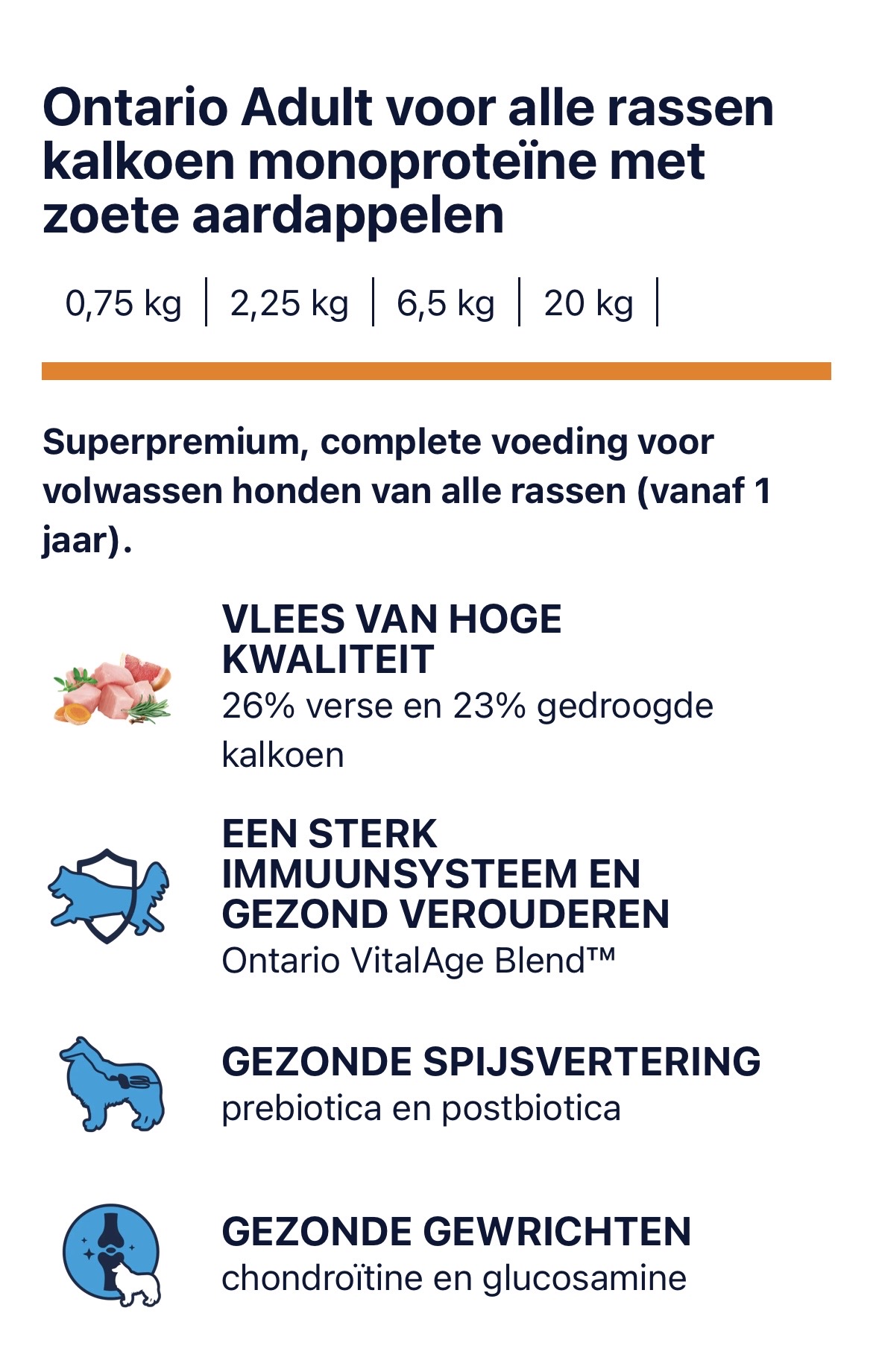 Ontario adult – monoprotein kalkoen & zoete aardappel